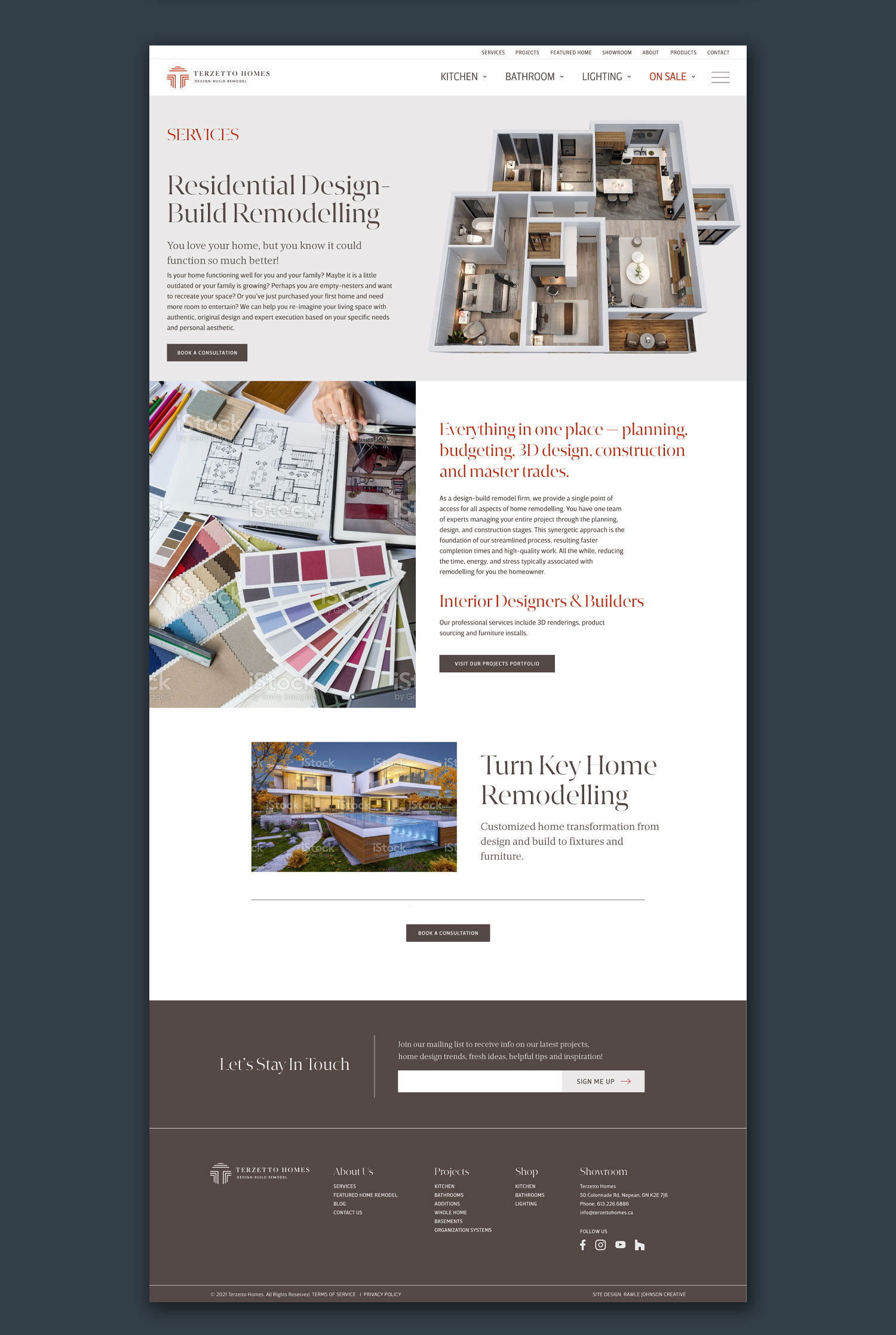 This was an existing design-build company operating under another name – with a specific offering for a specific market. They wanted to reposition themselves with a broader offering and appeal to a higher-end market. We were commissioned for a full rebrand including: renaming, creating a new brand identity, website design and development, as well as marketing collateral.